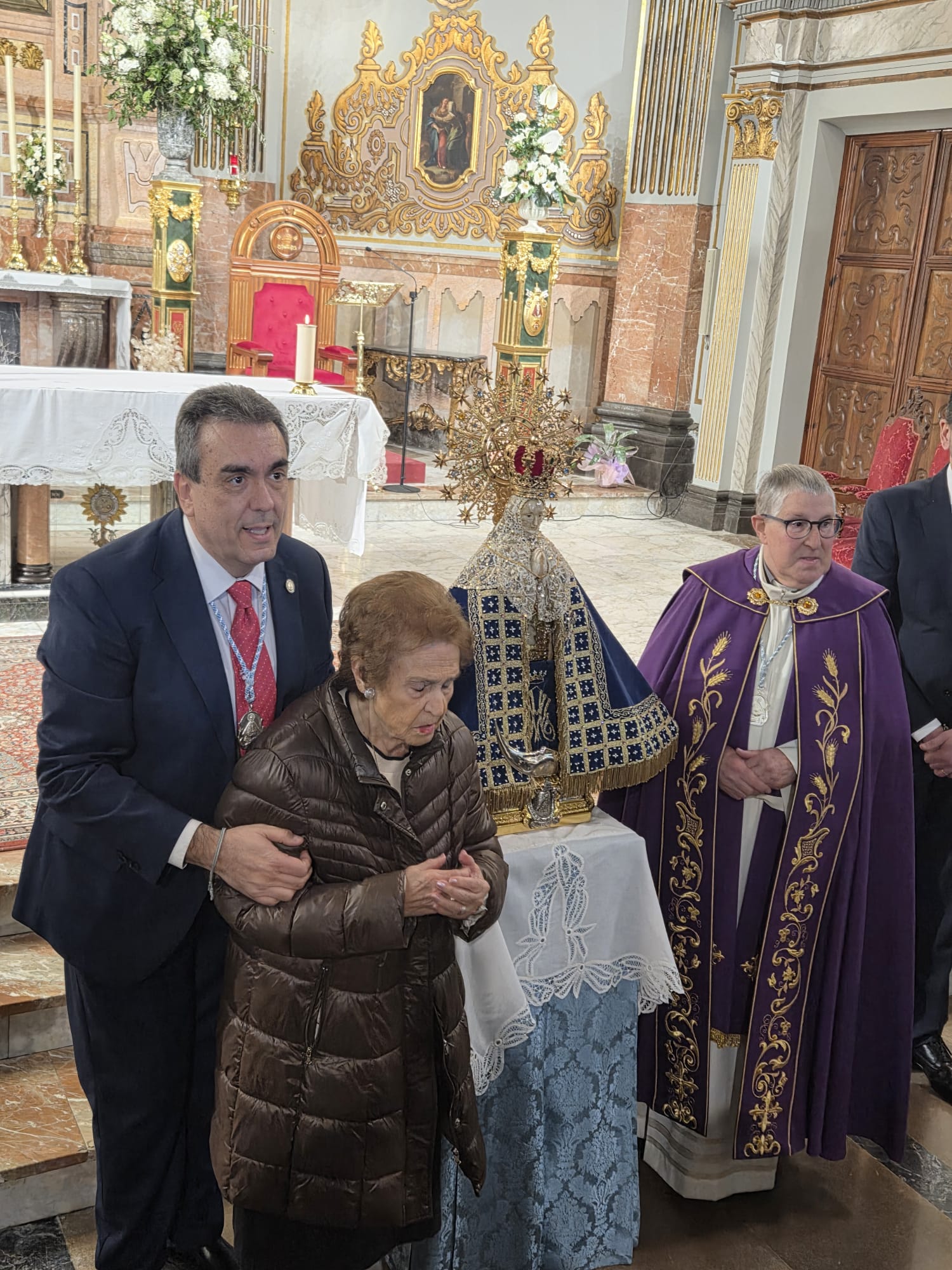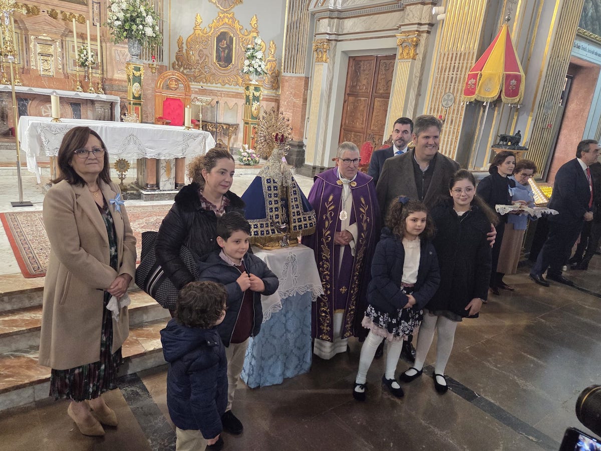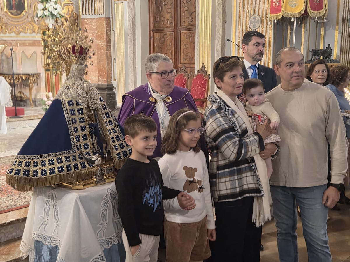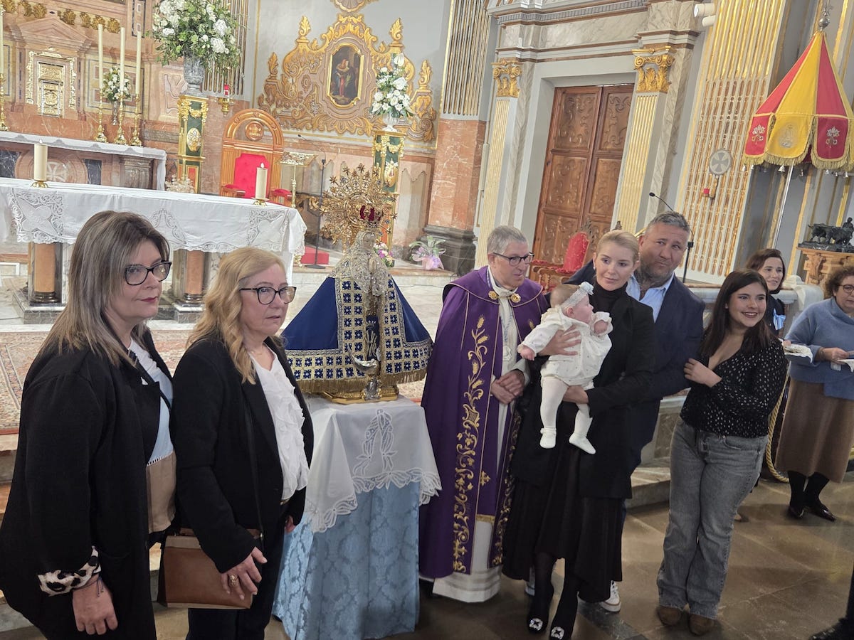 Numerosas personas y familias, acompañadas de sus hijos e hijas, participaron el pasado domingo 22 de febrero de 2026 en el tradicional rito del paso por el manto de la Virgen del Lledó.