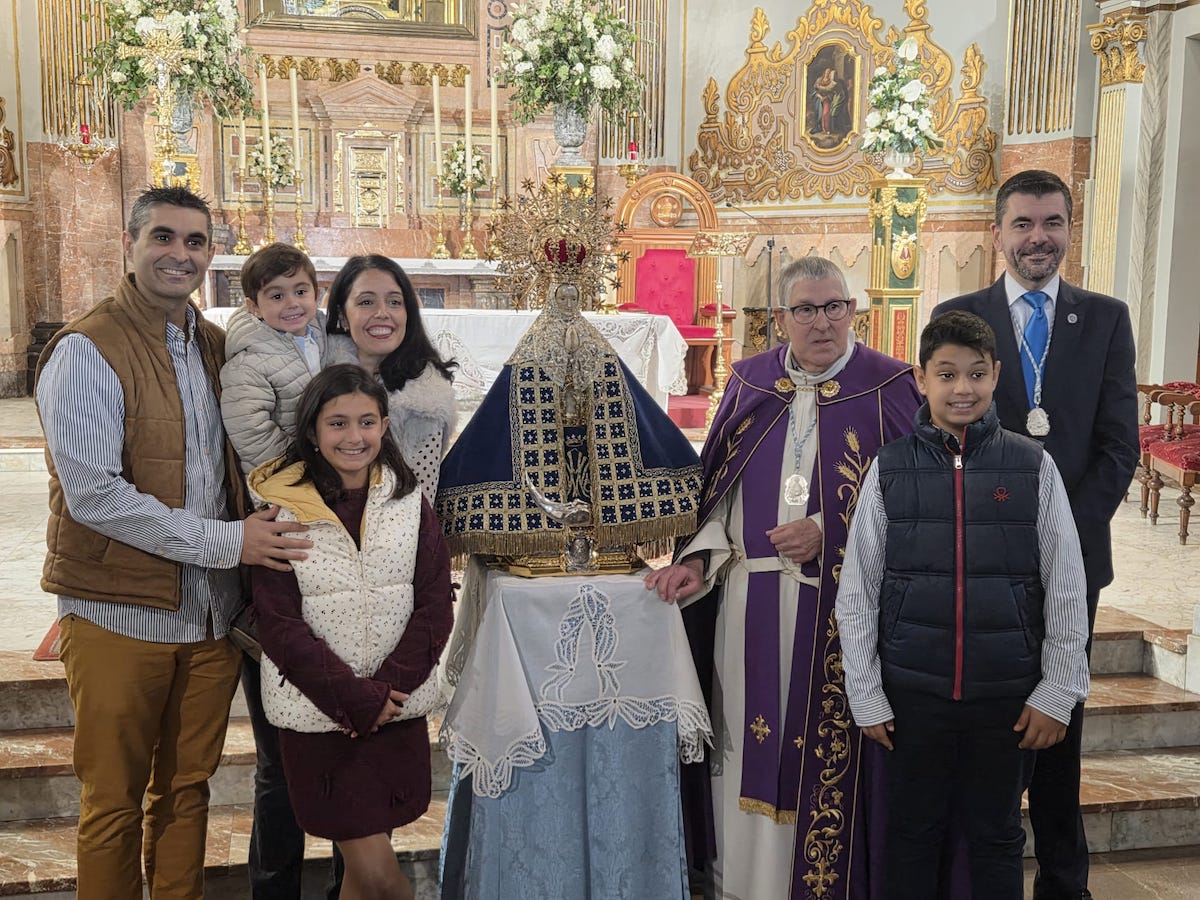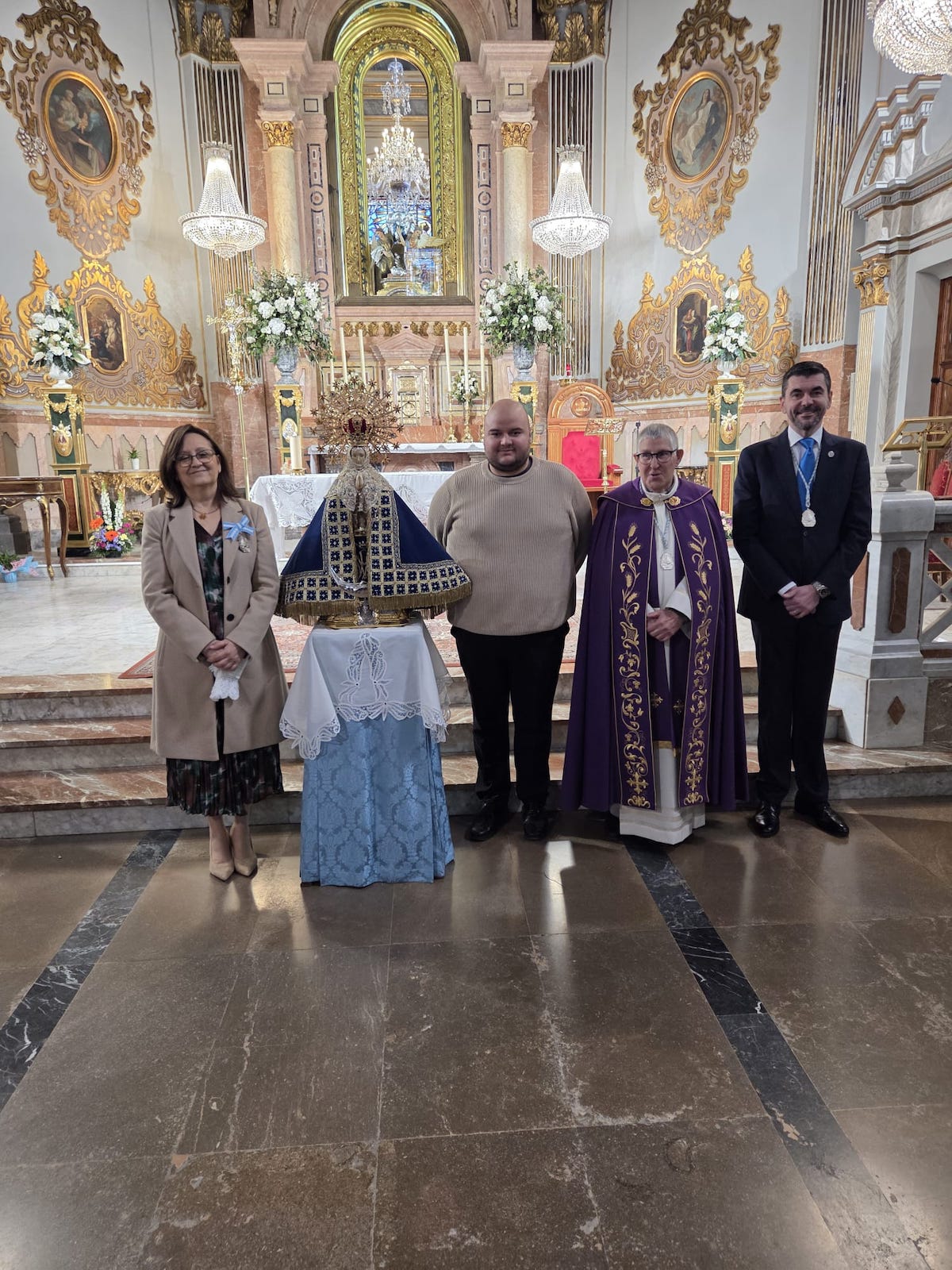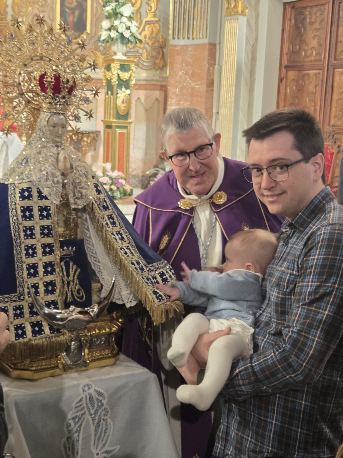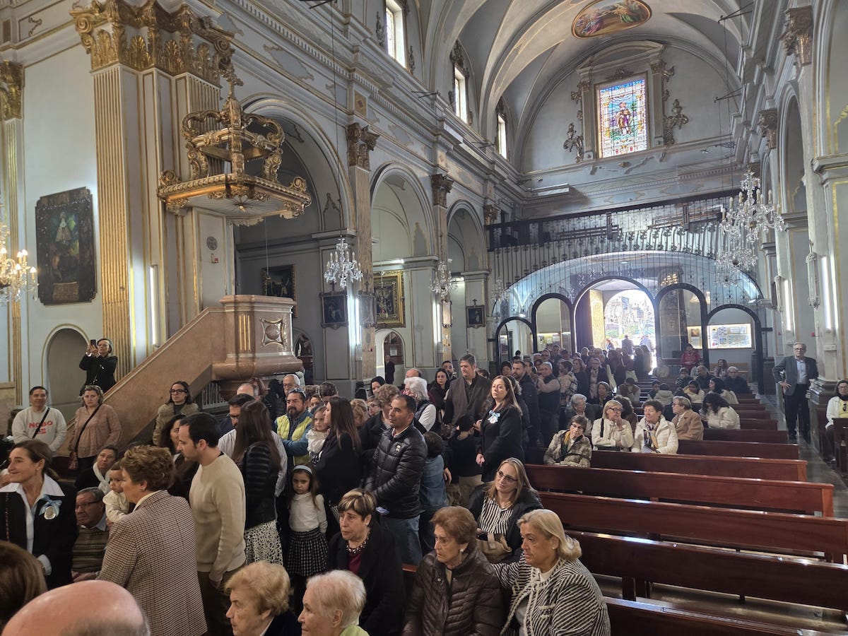 Numerosas personas y familias, acompañadas de sus hijos e hijas, participaron el pasado domingo 22 de febrero de 2026 en el tradicional rito del paso por el manto de la Virgen del Lledó.