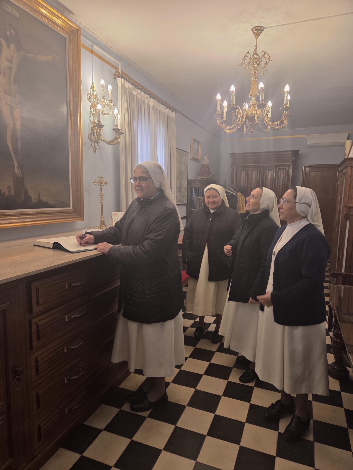 Tras elevar sus oraciones en el Camarín de la Virgen, las religiosas rubricaron su paso por el templo estampando su firma en el libro de visitas de la basílica, dejando así constancia de su devoción y afecto hacia la imagen venerada.