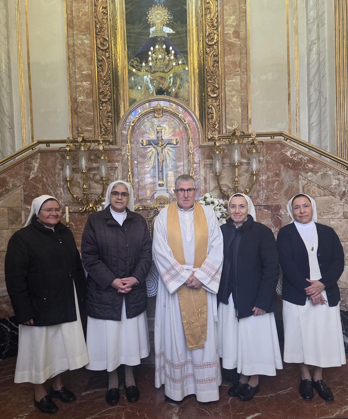 El pasado jueves 19 de marzo, con motivo de la solemnidad de San José, las religiosas Siervas de Jesús de la Caridad realizaron una emotiva visita a la basílica para orar ante la Patrona. La delegación estuvo encabezada por la Madre General, Sor Martina Espinal, acompañada por la secretaria Raquel Miranda, la superiora de la comunidad de Castellón, Sor Lucila Mata, y la Hermana Betty Curimilna.